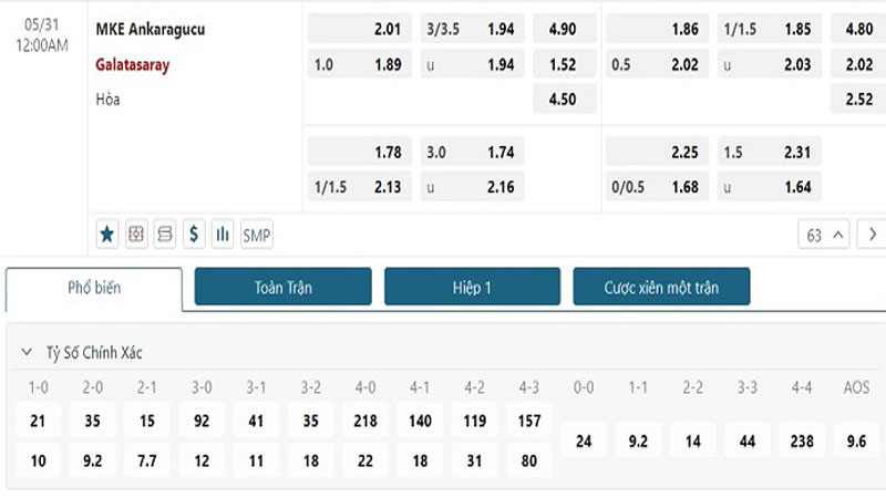 Bảng tỷ lệ kèo được các chuyên gia soi kèo phân tích